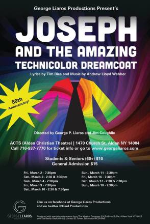 “Joseph and the Amazing Technicolor Dreamcoat” closed March 18, 2018 at ACTS in Alden. For more information on upcoming shows by George Liaros Productions, click here.