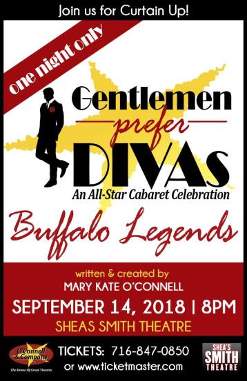 “Gentlemen Prefer DIVAs: Buffalo Legends “ was on stage one night only at the Shea’s Smith Theatre, as a salute to the people, places, and things that make Buffalo the special, awesome, fabulous place that it is. From its renowned arts and cultural scene, the innovations and inventions that changed the world, to the gracious and glorious architecture, artistic director Mary Kate O’Connell had plenty of inspiration in writing this script for this fast moving cabaret show.